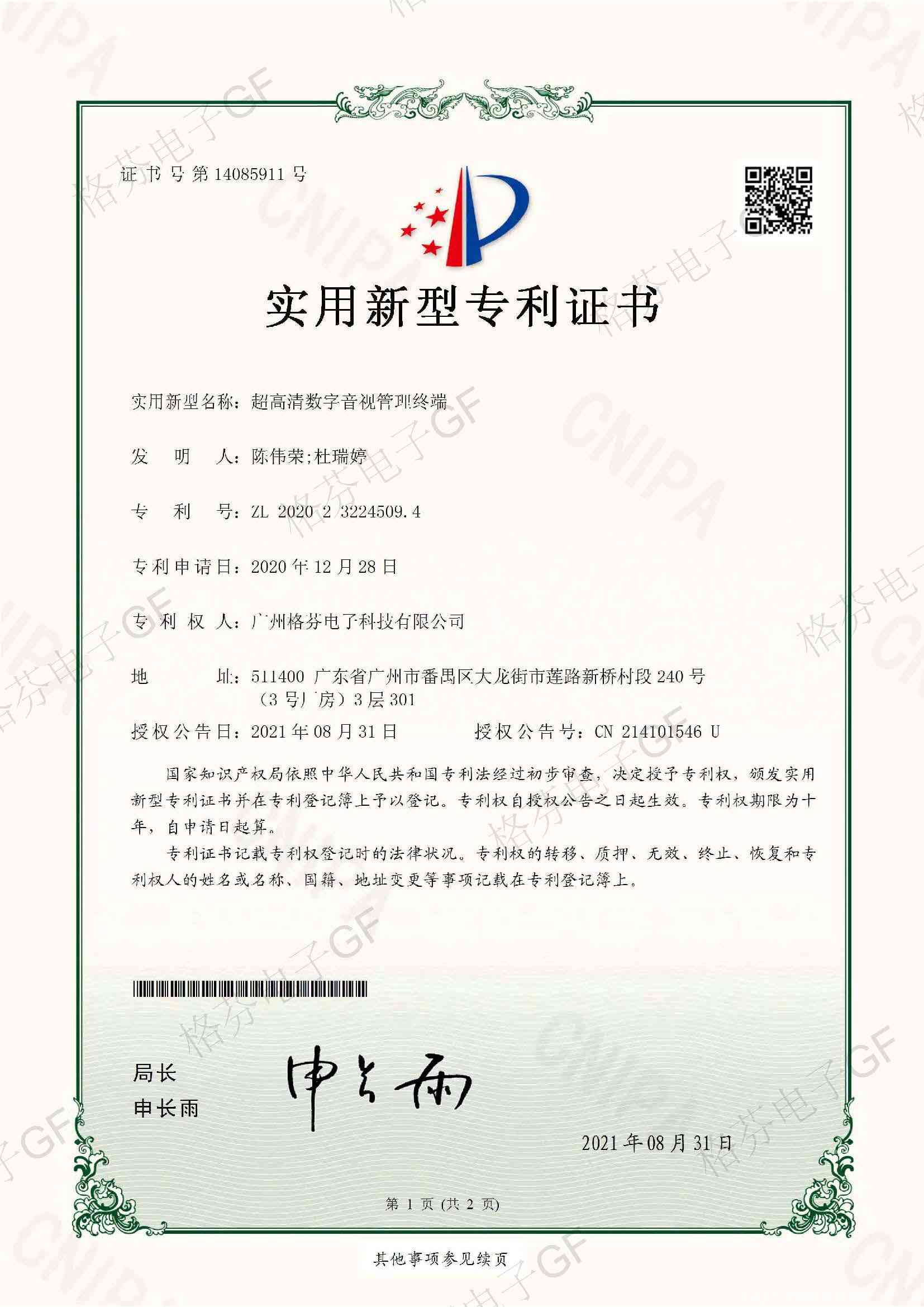专利证书