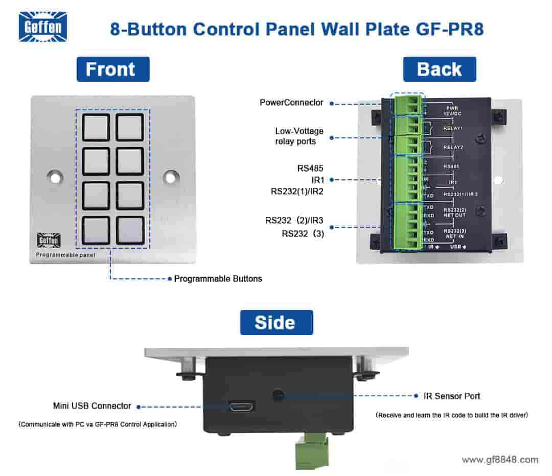 GF-PR8按键可编程中控面板是一款功能强大、性能卓越的中控设备,其优点众多,以下是关于GF-PR8的更多优点: