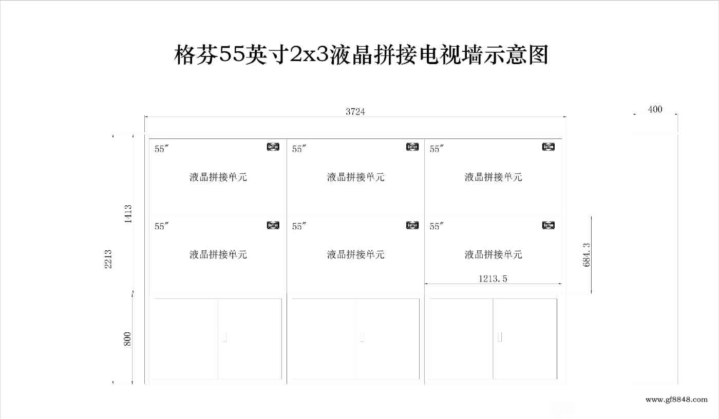 55寸2X3液晶拼接电视墙落地式示意图