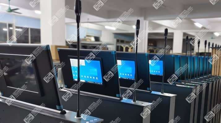 智能15.6寸超薄触摸液晶屏带话筒升降一体机
