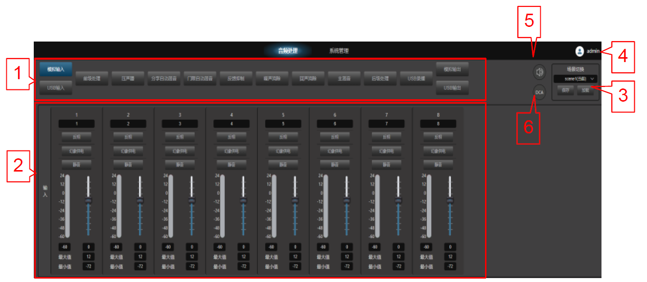 5)系统静音:控制所有输出通道一键静音;