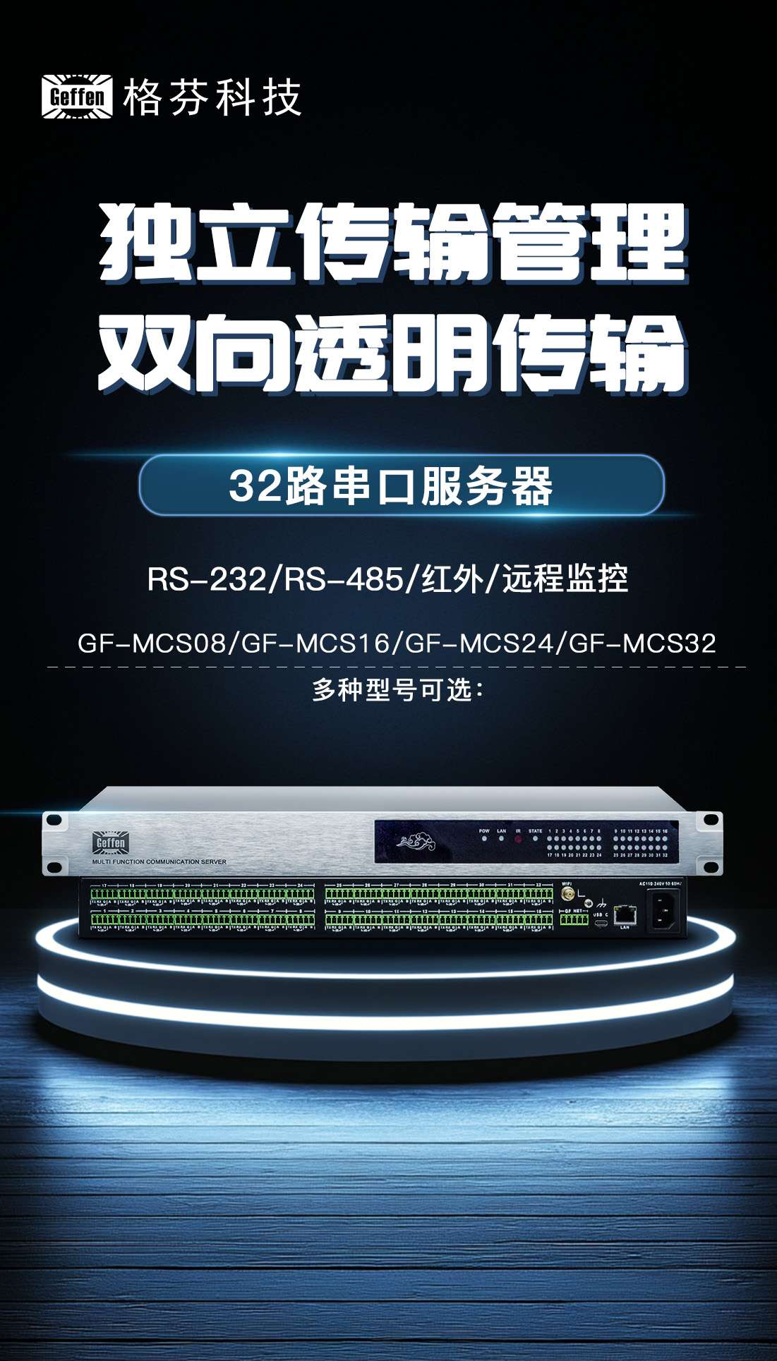 GF-MCS32串口分配器提供多种输出端口数量的选择,包括8出、12出、16出、24出以及32出等,以满足不同规模和需求的场景。