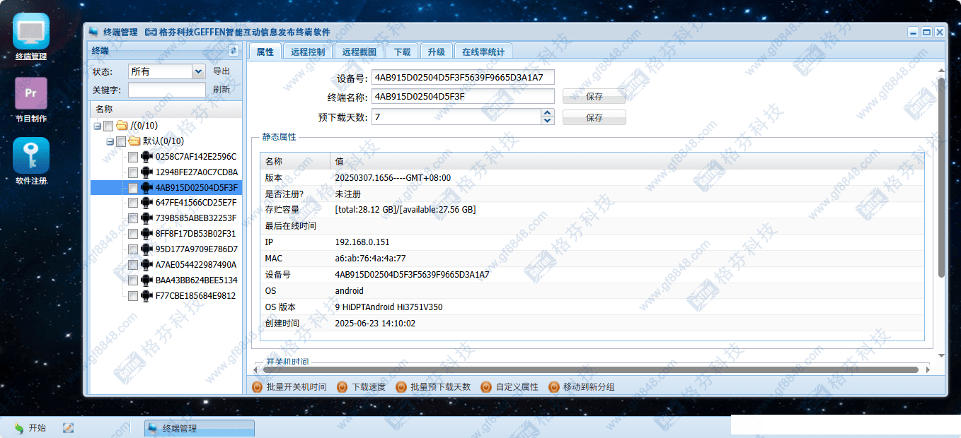 格芬多媒体信息发布系统通过计算机网络把控制主机制作的节目素材、节目播出表、字幕和同步时间等发送到分布各个区域的播放终端,并把终端信息反馈编辑控制主机,从而实现多媒体信息的集中显示和控制。