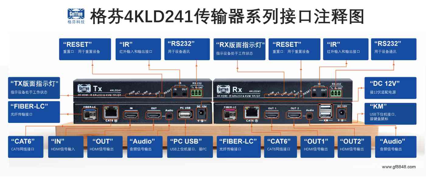 6、RX端2路HDMI输出,1路模拟音频输出