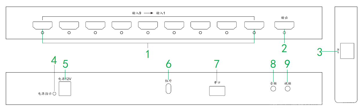 ● 支持9路HDMI输入,1路HDMI输出