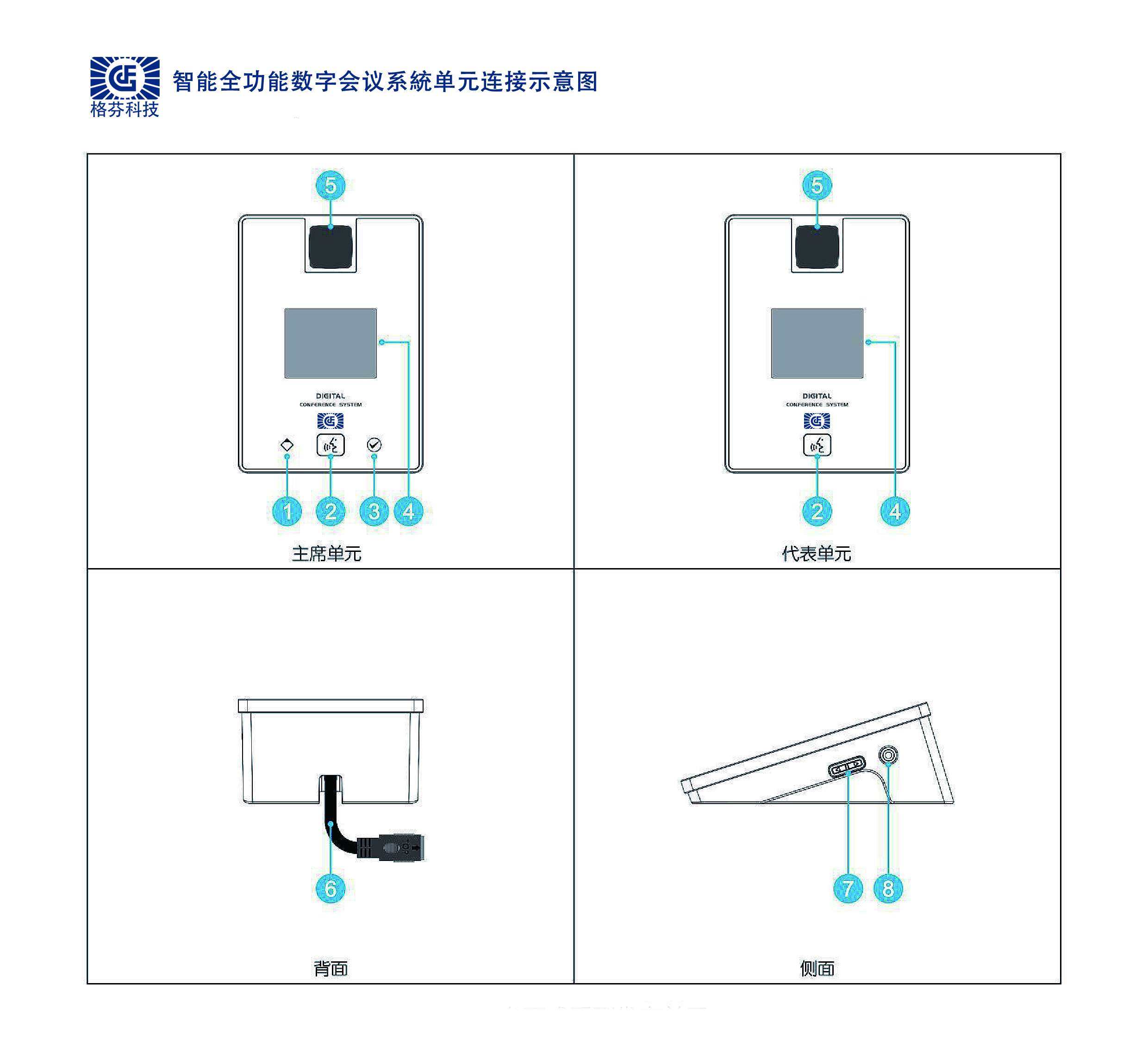 主席单元:按下此键可直接开关话筒,当话筒开启时,话筒指示灯圈红灯恒亮;