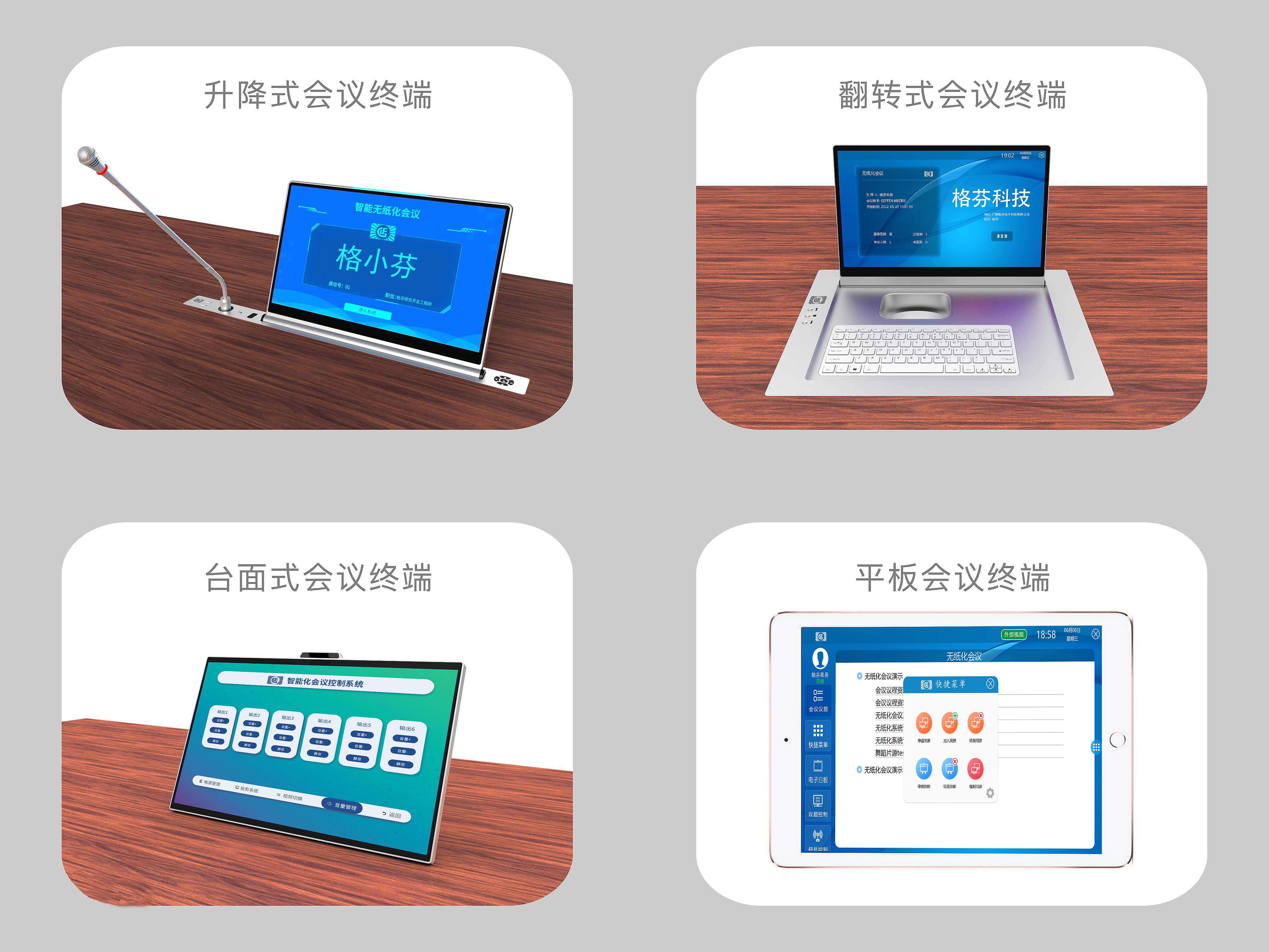 格芬无纸化会议系统改变了“会议扩声+视频显示”的传统会议系统模式。实现了与会议过程无纸化、材料信息化、会议资源分享化、音视控 录各类文档材料等全方位的信息互动,打通信息孤岛,可接入办公OA系统、远程视频会议等资源、从而提高会议效率、简化会议步骤、 提高会议量。同时也带来了全新的会议体验。