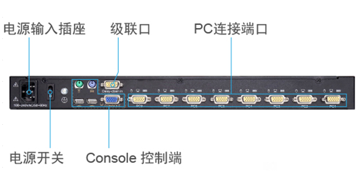 单组控制端管理16台服务器可级连多台设备,最多可管理512台计算机
