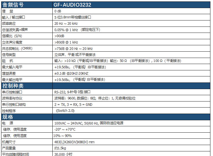 ●GF-AUDIO3232 32路音频输入,32路音频输出,可完全交叉切换