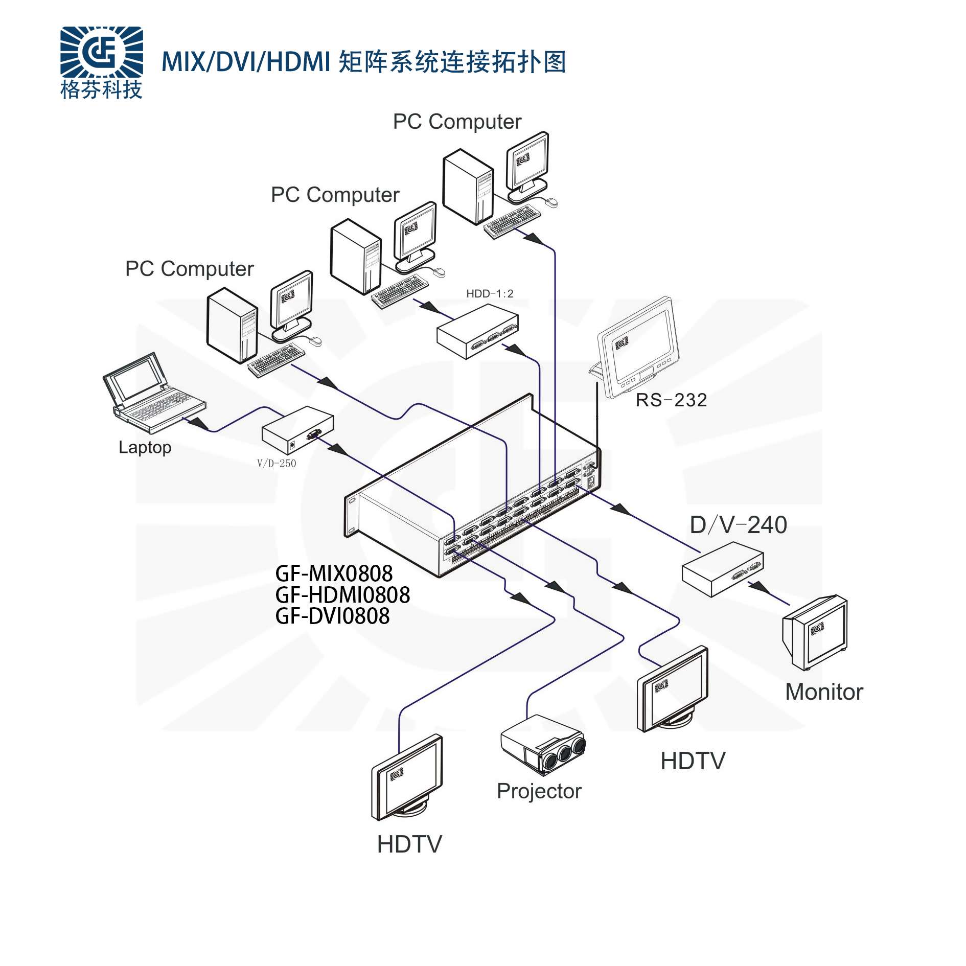 HDMIDVI矩阵系统连接图拓扑图格芬系统连接
