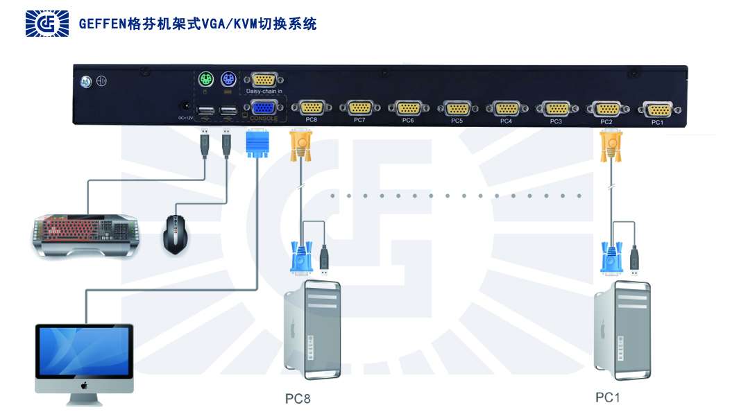 ●支持支持无缝级联技术(Gapless Cascading)及OSD树状分层技术(2 Levels OSD Tree),支持GEFFEN系列所有系列级联●采用隔离技术与仿真技术,避免键盘鼠标的串扰现象