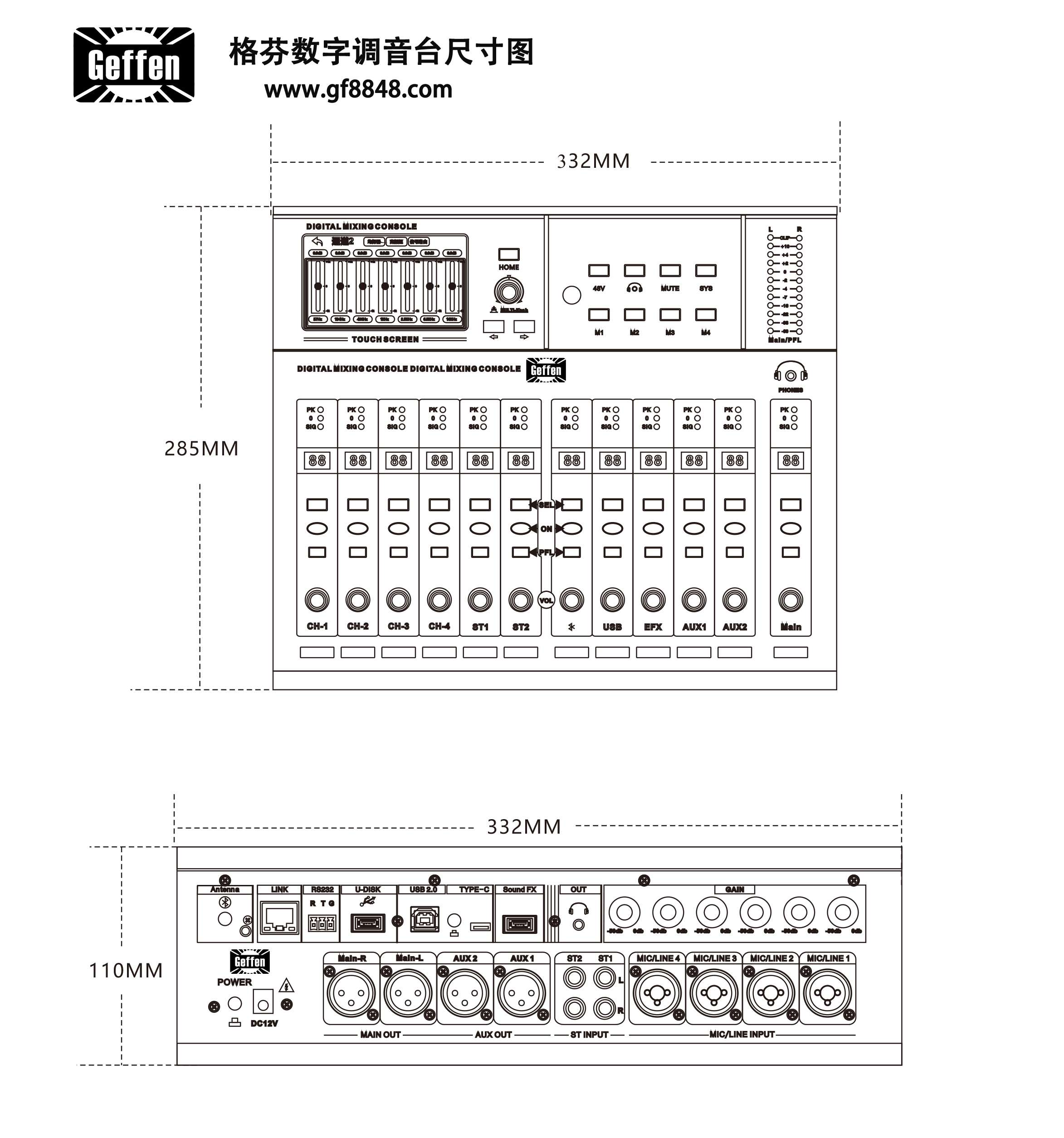 •MIC/Line输入支持独立的反馈抑制功能,有效抑制啸叫