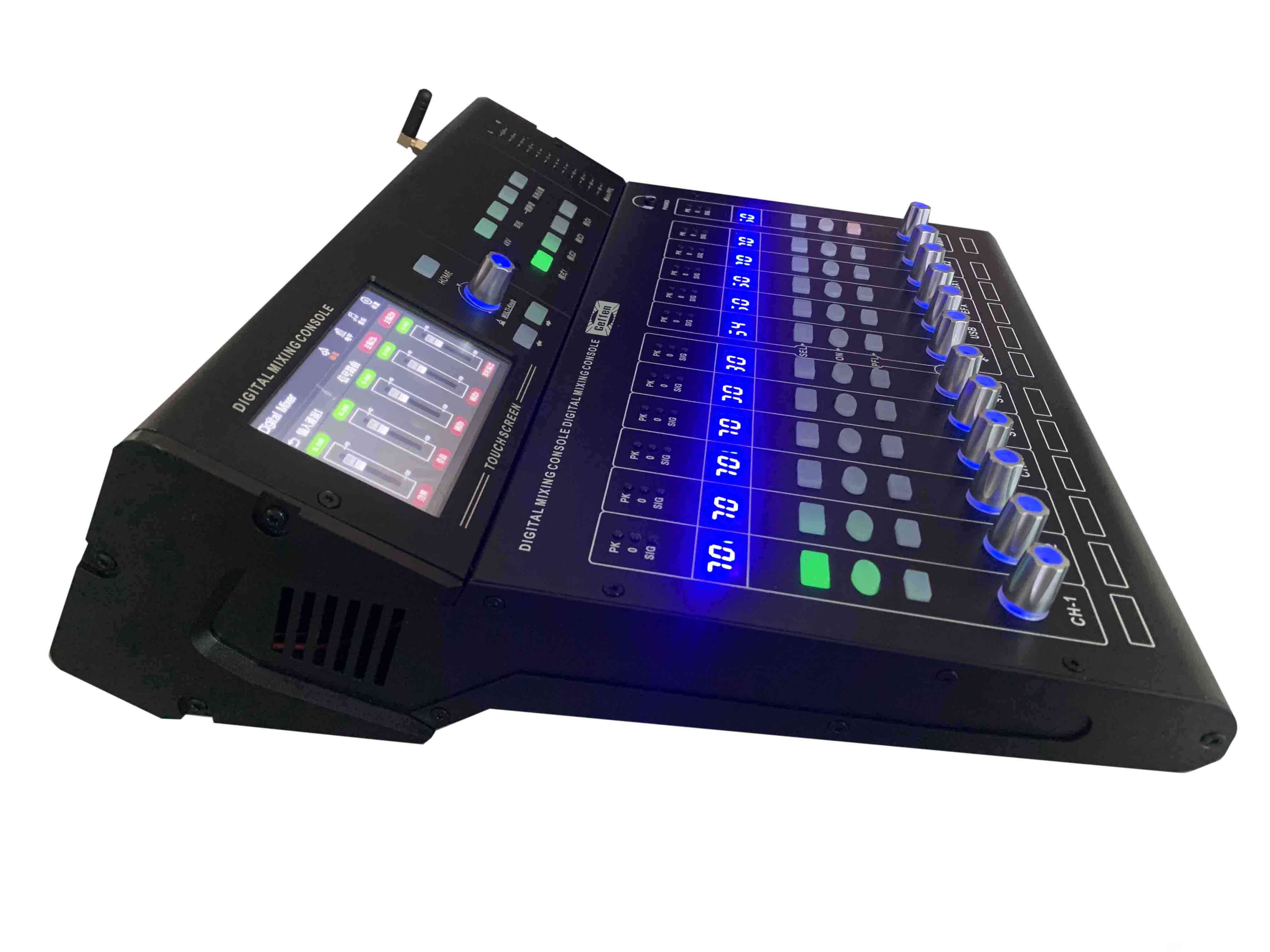 •输入内置噪声门,压限器,高低通,7段参量均衡,延时,相位,输通道声像平衡调节