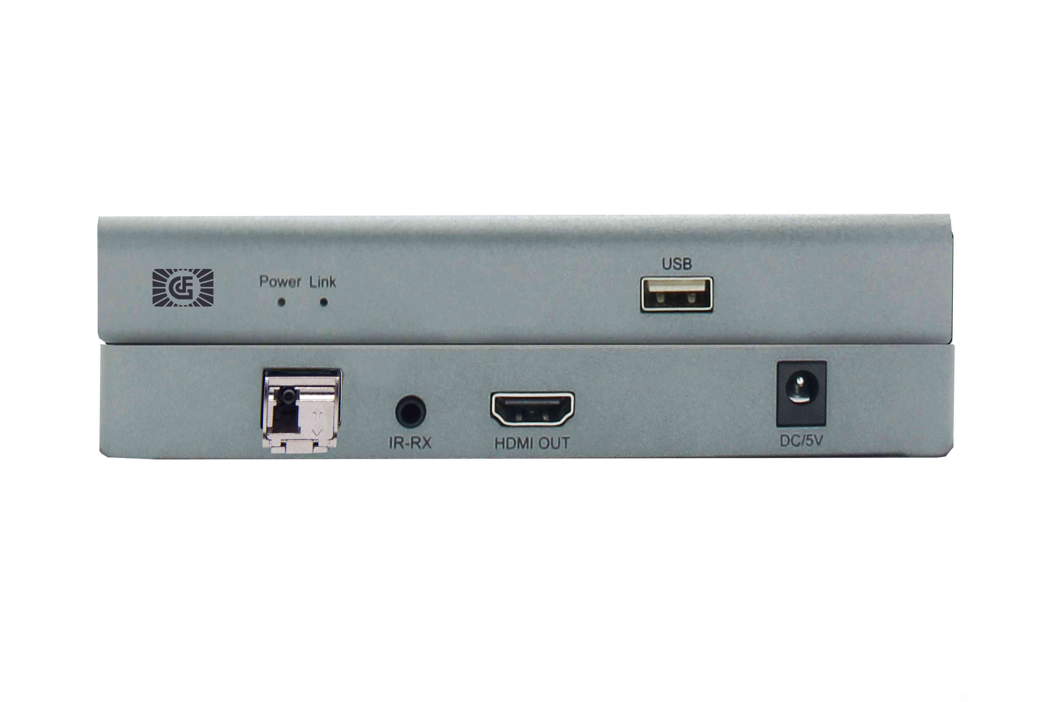 ●HDMI线连接HDMI信号源与HDMI 发射端。 ●HDMI线连接HDMI 接收端与显示设备。 ●光纤线代替HDMI线将延长器的发射端的光纤接口和接收端的光纤接口连接起来,最长可传输20km。 ●将5V电源接到设备上,对设备供电此时视频传输设备的 POWER 灯亮,当Link灯亮,设备启动正常。