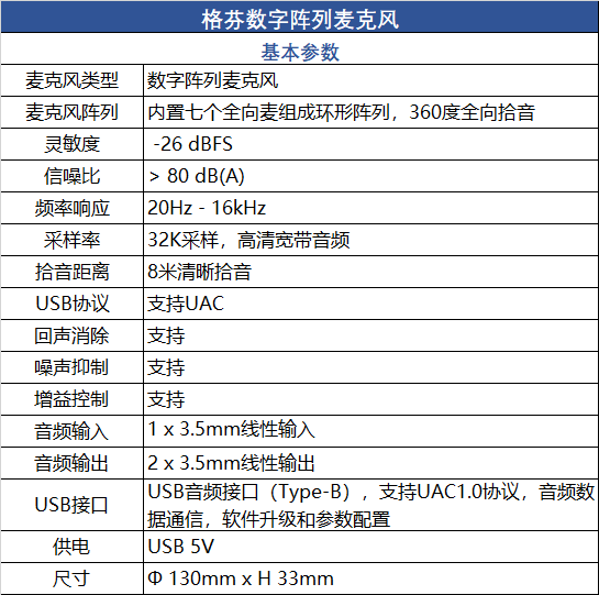 ●麦克风类型:数字阵列麦克风