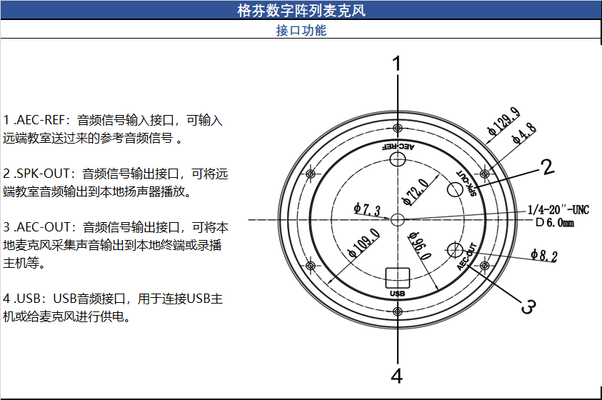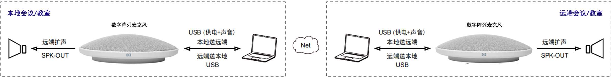 配备标准 USB2.0 和 3.5mm 音频接口,设备即插即用,无需专业调音,安装维护便捷,满足室内和模拟音频双模应用。