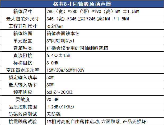 GEFFEN吸顶音箱广泛应用于学校、操场、车站、企业、广场、办公大楼、车间等场所的背景音乐、公共广播系统,并且逐渐走入家庭背景音乐系统中使用。