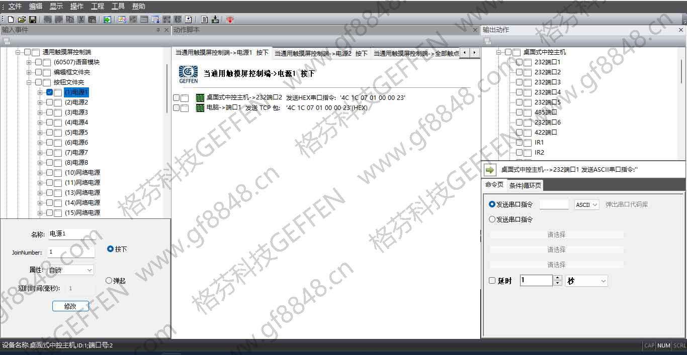 GEFFEN IOT系统运行于 Windows 视窗操作系统,兼容 win98/2000/XP/2003/ vista。是功能最为强大、稳定的一款可编程中控编程软件。