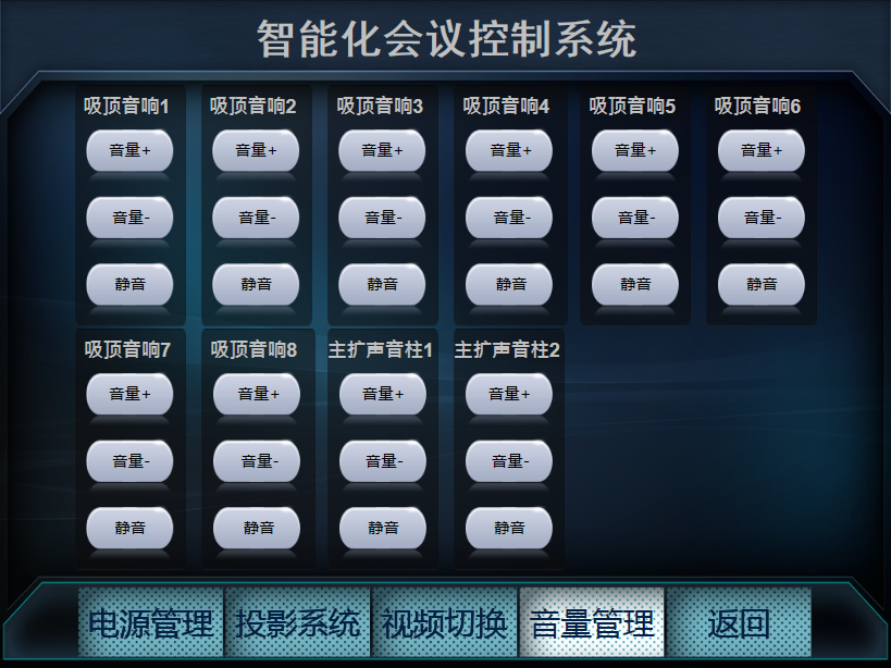 音频处理器控制:控制所有音频输入、输出通道的音频大小,全程实时反馈音量大小。
