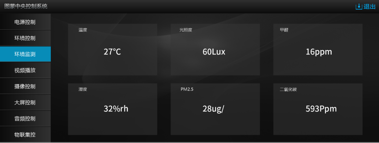 以对每一个会议室的温湿度等感应数据可以实时反馈到触屏端,以便于用户了解当前室内环境情况。
