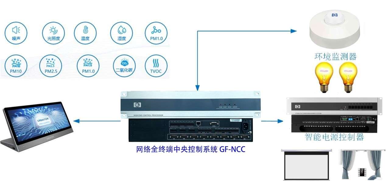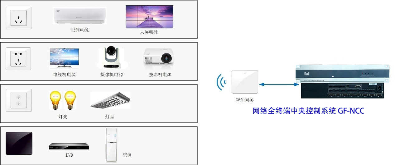 会议室有电动窗帘、空调、电动投影幕布或拼接大屏等设备,需对其进行集中控制;