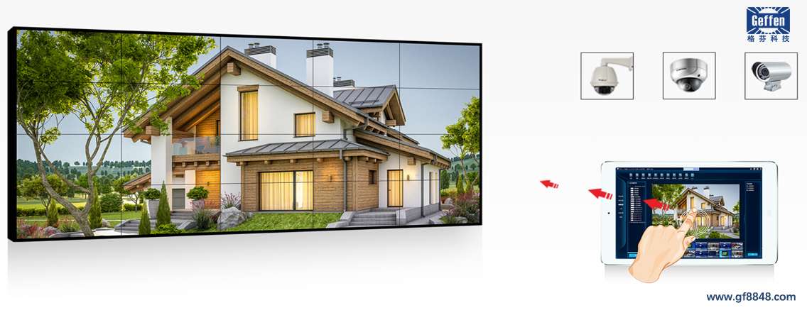 可实现任意一路输入信号实现整屏显示,通过整屏显示用户可实现对局部重点区域信号实现重点监控的目的。
