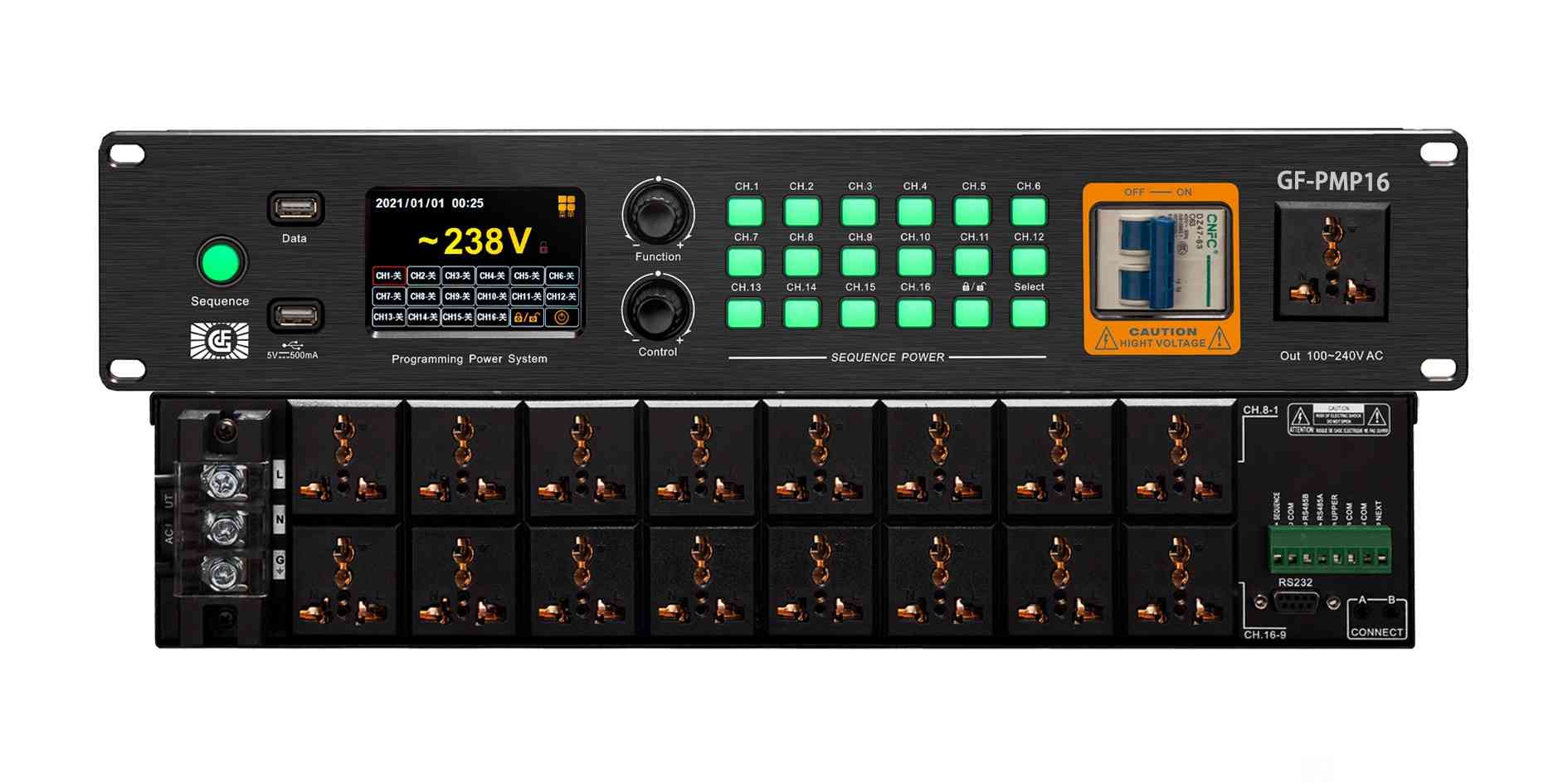 ●可实时显示当前电压,日期时间,通道开/关状态等信息;