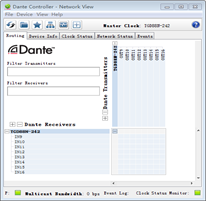 ● 在Dante音频网络中,需要通过GEFFEN Dante Controller软件对接入处理器的各路信号进行路由设置。可以实现Dante网络内输入到输出的1对1,1对映射操作。