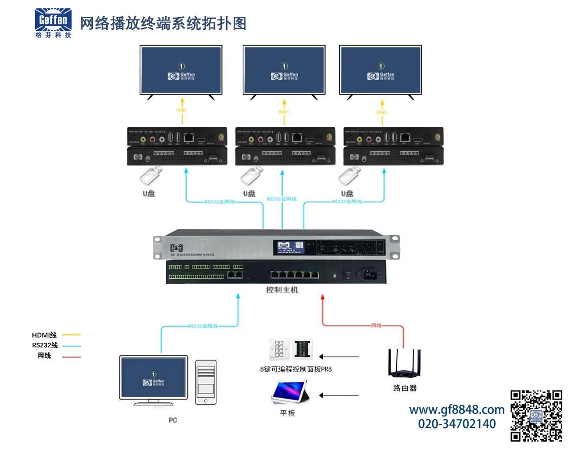 多媒体网络信息播放终端系统拓扑图