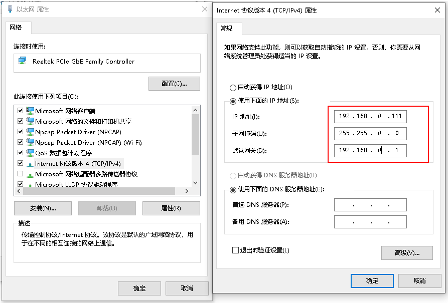 第五步:根据扫描到的网段,对电脑的IP进行再次设定与节点同网段,即重复第一到第四步,直到所有节点的IP修改正确。