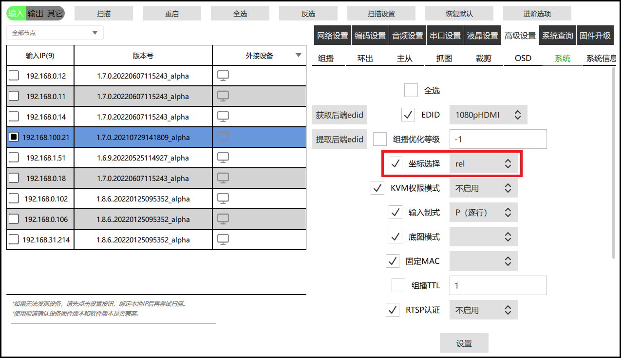 ●KVM输入节点设置