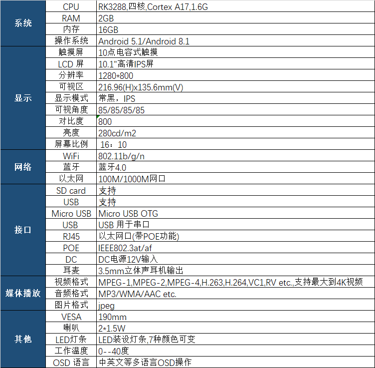 ●以太网接口(标配POE功能 IEEE802.3at,POE+,class 4,25.5W)USB用于串口(RS232 电平 RK3288/3399)