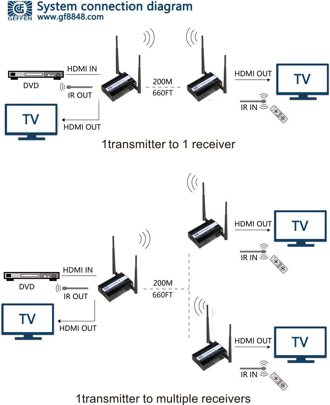 ●无线传输HD 信号,
