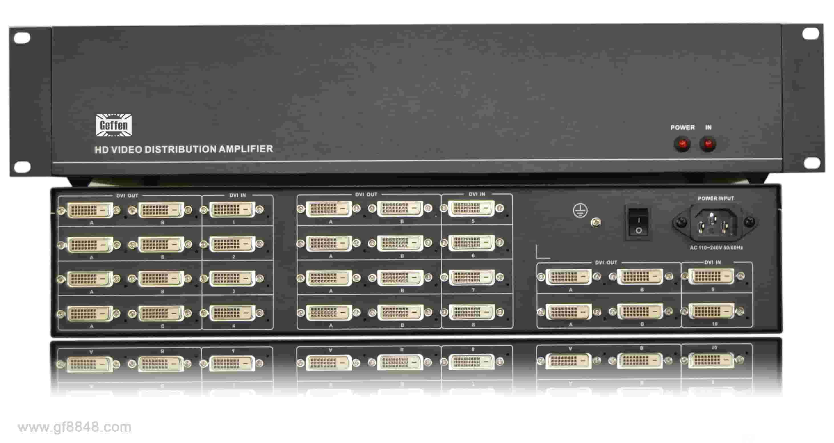 10进20出出的一款具备智能EDID管理功能的HDMI分配器,可以将10路HDMI信号分配成10组20路信号输出。该分配器支持HDMI单通道下所有分辨率,支持1920*1200@60hz,同时支持HDTV格式下所有分辨率,支持4K2K分辨率,支持3D信号。和市面上大多数HDMI分配器不同,本分配器在对EDID处理方面做了一些特殊设计,可以现场学习任意显示设备的EDID,同时内置多种常用的EDID信息,确保达到完美的显示效果,一般的设备是固定一个EDID,不能改变,从而在使用时往往会出现显示器端的画面黑边或者不满屏等情况。同时本设备还支持HDCP,前面面板设计了很多指示灯,可以很方便了解目前信号源和显示设备的连接状况。